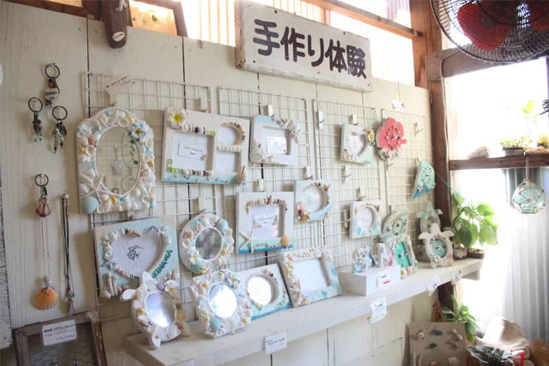 人気のフォトフレーム作りは2,100円より、夜光貝アクセサリー作りは2,500円より体験が可能です。