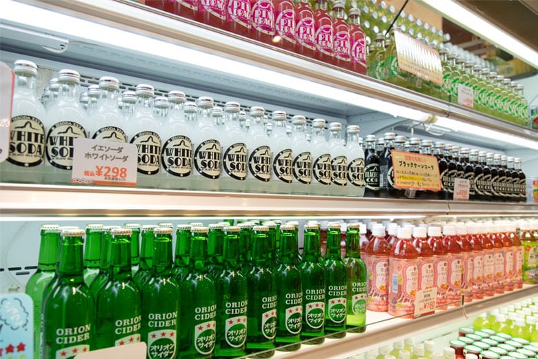 北部の本部港からフェリーで30分ほどで行ける離島、伊江島の名産品「イエソーダ」やハイビスカスティーなど、トロピカルなドリンクが豊富です。