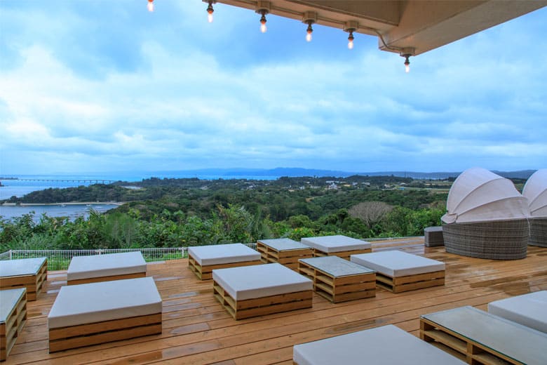 沖縄屈指の景勝地として知られる「古宇利島」をパノラマで見渡せ、晴れた日には遠くに伊是名島までをも臨める隠れた絶景スポットです。