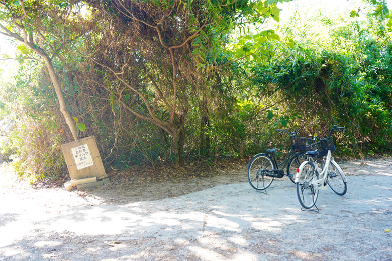 西桟橋は集落の中心部から西側の海岸に向かって徒歩で約10分、自転車で約5分ほどの場所に位置し、全長は約105m、幅は約4mの桟橋です。