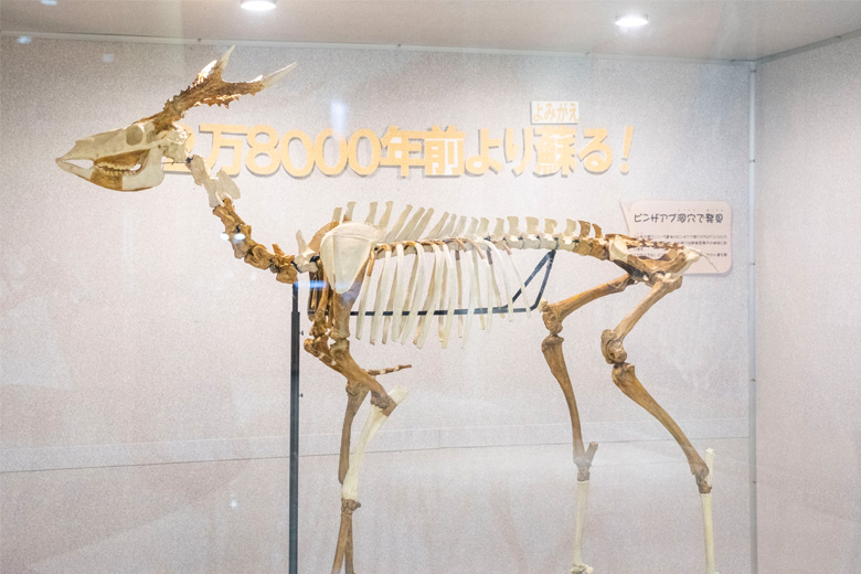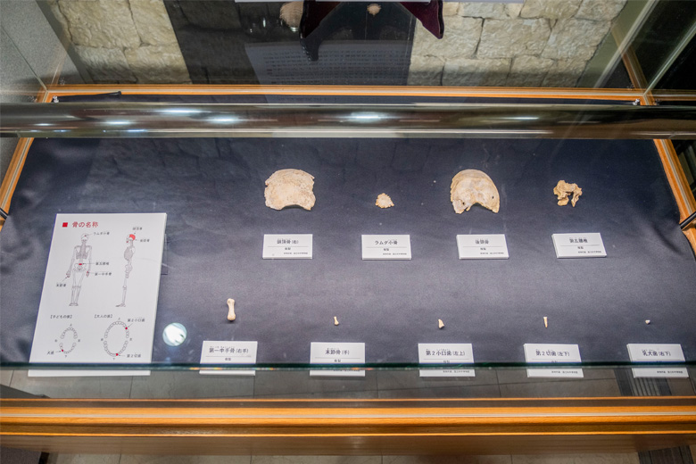 これはピンザアブ洞人と呼ばれ、現在日本国内において3番目に古いとされる人骨であり、大変貴重なものです。