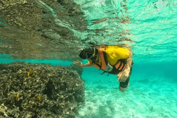 (スノーケルをしながら貝などを食べる体験ができます)