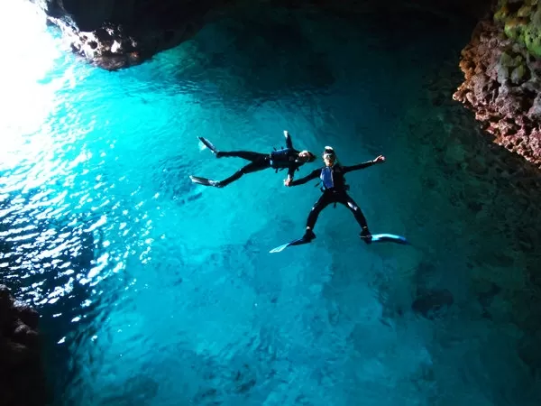 沖縄・青の洞窟ビーチシュノーケリング【ガイド貸切・約2時間・10歳以上・2名~・餌付け体験】