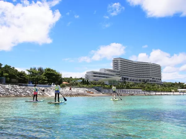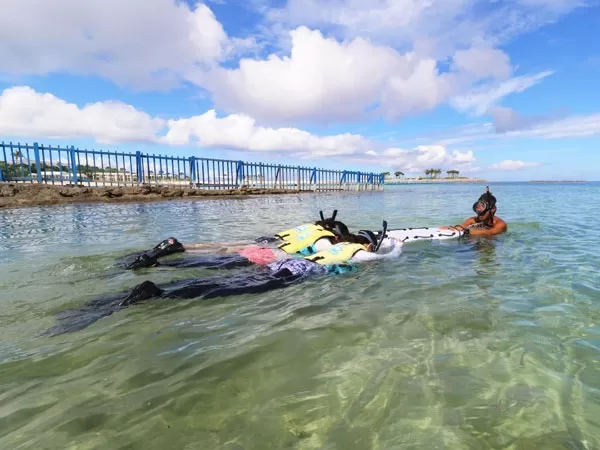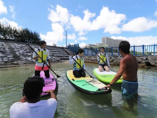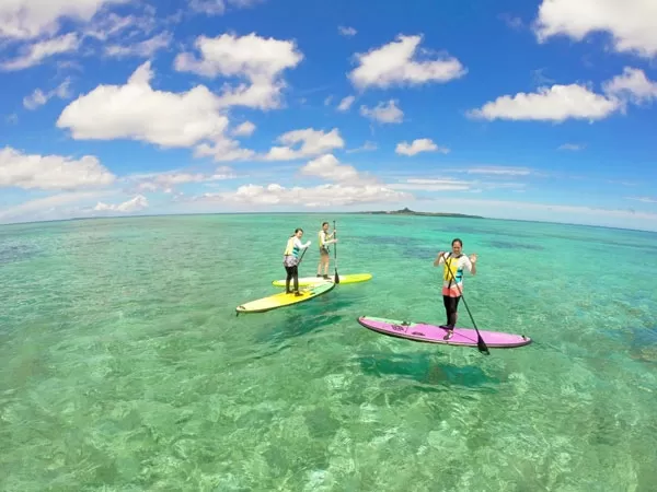 沖縄美ら海水族館から2分!備瀬マリンレジャー『沖縄SUP&シュノーケリング』セットツアー【沖縄本島北部|本部町「備瀬」・約2時間30分・6歳以上・1名~・餌付体験無料・当日電話申込可】★備瀬のフクギ並木入口に店舗