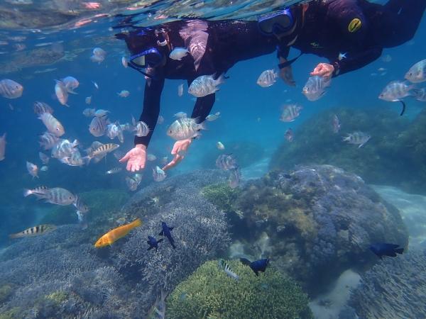 【沖縄・恩納村】無人島シーカヤック&サンゴと熱帯魚シュノーケリング|高画質動画・写真データ無料/餌付け体験付/大好評の充実アメニティと清潔な店舗/4歳~/家族、友達、女性も満足