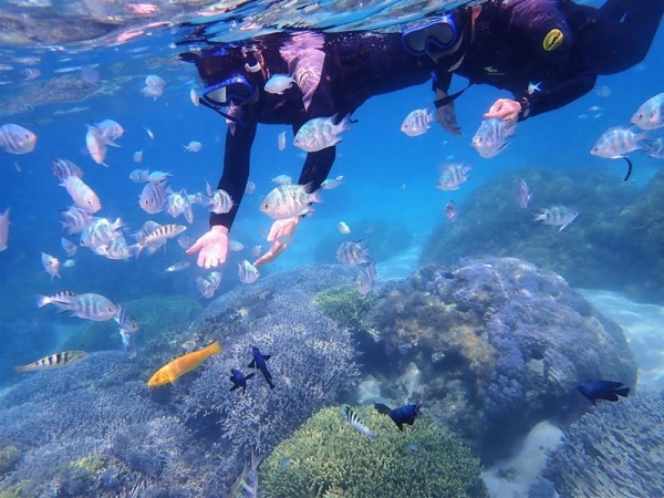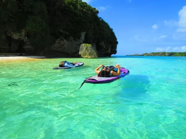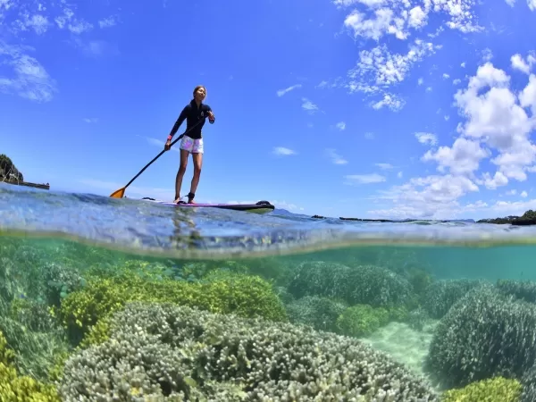 【沖縄・恩納村】SUP&シュノーケリング「無人島を目指す冒険へ!」|昨年1500名以上案内/高画質動画・写真データ無料/餌付け体験付/大好評の充実アメニティと清潔な店舗/家族、友達、女性も満足