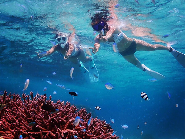 シュノーケリングは、無数のサンゴ礁、クマノミなどの熱帯魚を観察♪