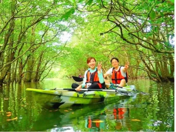 西表島を代表するマングローブの森を人気のカヌーで漕いで秘境ジャングル大冒険!奇跡のでバラス島・ウミガメと一緒に泳げるシュノーケリング♪