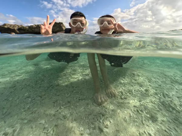 初めてのシュノーケルやお子様も 安心してご参加できます。