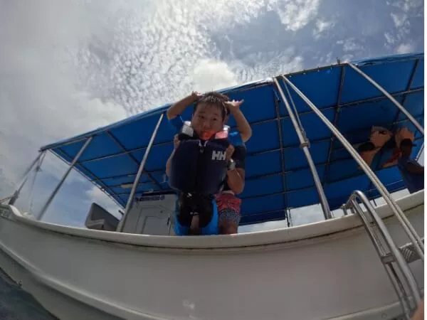 このプランでは、お子様が浮き輪にまたがり覗き眼鏡で海の中を覗く体験ができます。