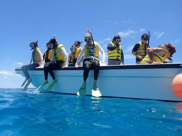 美しいエメラルドグリーンの海でのボートシュノーケリングは格別 です!