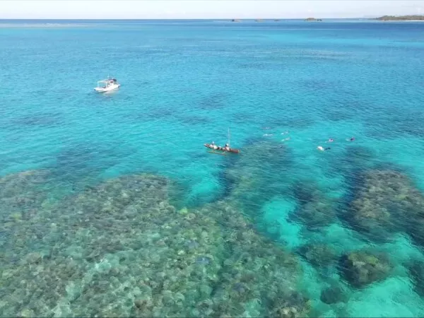 櫂(かい)を使った昔ながらの操船に挑戦しながら美しいサンゴ礁を目指します。