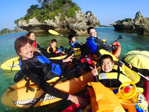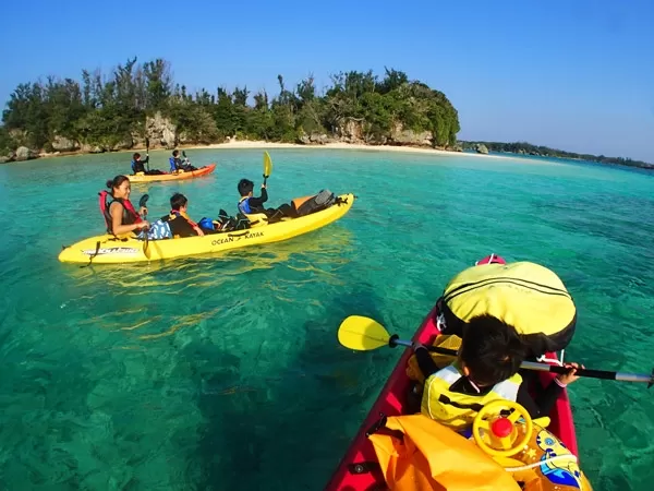 恩納村『シーカヤック無人島上陸&シュノーケリング』★1グループ完全貸切制【約3時間・3歳以上・1名可・ドリンク&おやつ付き】