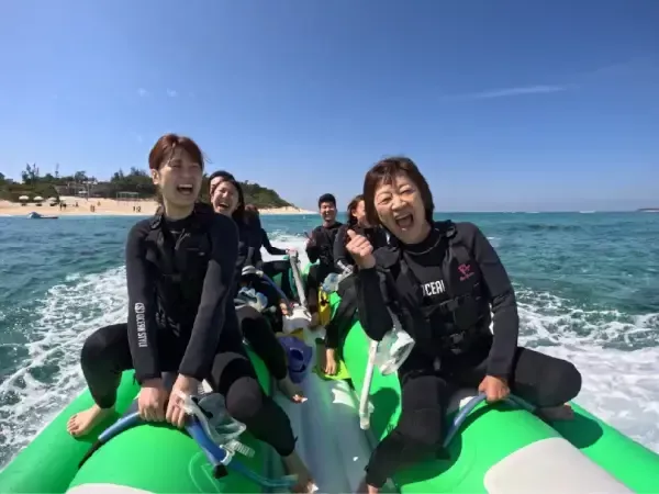 【瀬底島ツアー】バナナボートで行くシュノーケリング+パラセーリング