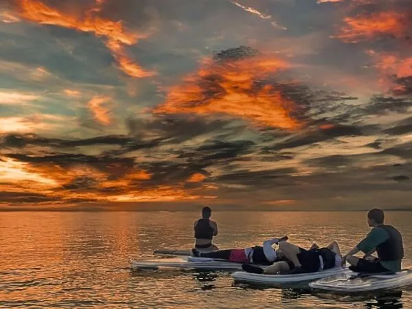 ・透明なサップやカヤックで、水面に映る夕焼けのグラデーションを眺めながら、幻想的なひとときを