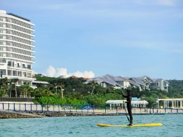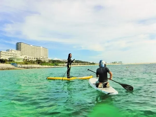美ら海水族館から2分!備瀬マリンレジャー『サンセットSUP(スタンドアップパドルボード)』ツアー