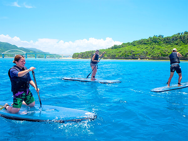 瀬底島周辺☆クリアSUP&バナナボート体験セットプラン☆