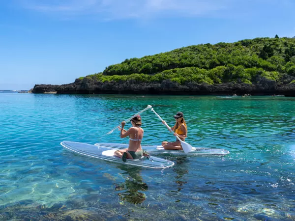 全体が透明になっているクリアSUPに乗って、宮古島ブルーの海をお気軽散策!
