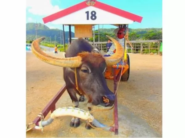 可愛い水牛車に乗り三線を聴きながら揺られ、海の上を渡ります。