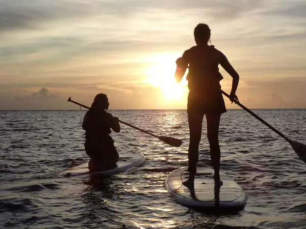 ロマンチックな夕焼けとともに、贅沢なサップ体験をすることができます。専属のガイドが安全にご案内し、特別な思い出をお届けします。