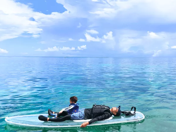 小さいお子様(中学生未満)やご高齢の方がいる場合は、クリアサップとクリアカヤックを併用してツアーをしています。