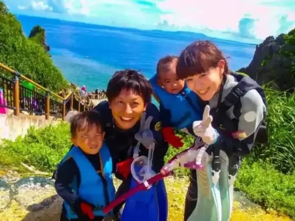 お疲れ様でした、海からあがってくる時は皆様最高の笑顔でいらっしゃいます^^その後は提携施設の青の洞窟Core(コア)でシャワーやお着換えいただけます。 |