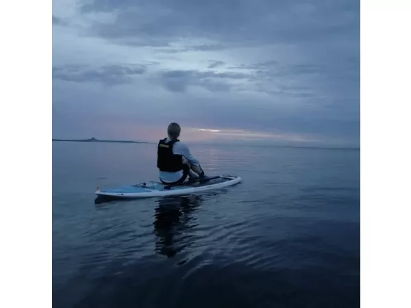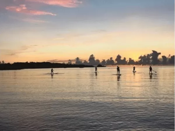 陽が傾きかけ刻一刻と変化していく海と空を眺めながら思いにふけるSUPツアー
