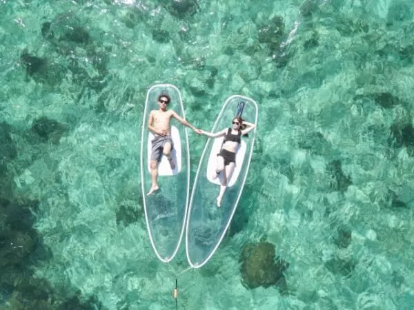 透明なクリアSUPに乗って、まるで海の上を歩くような体験を♪