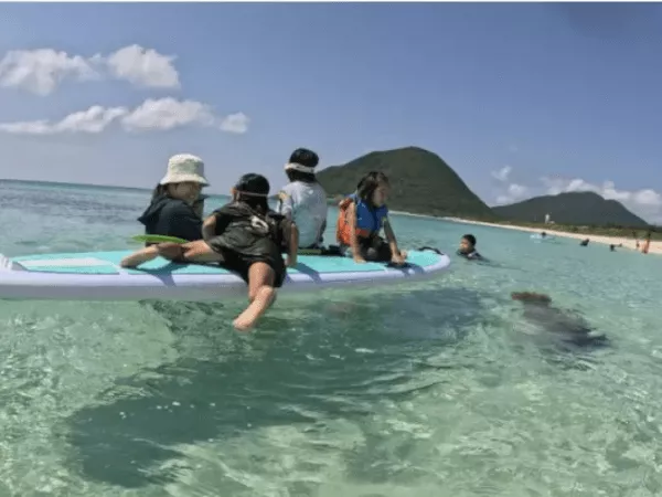 沖合でSUPを浮かべてシュノーケリングをお楽しみいただきます