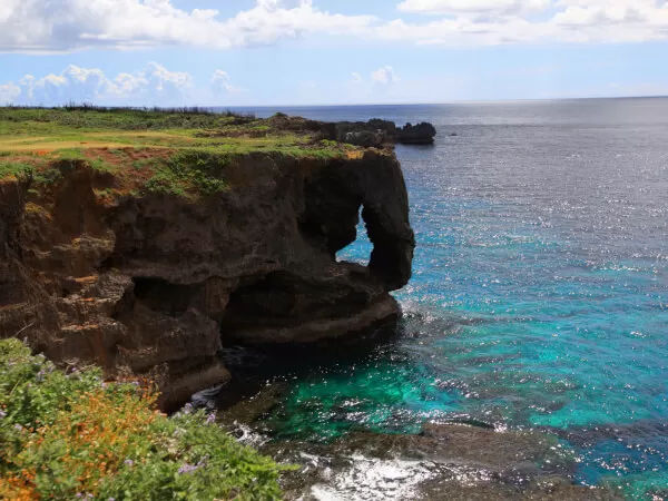 高さ約20mの絶壁に象の鼻のような形をした奇岩が見所の景勝地。断崖の上から眺めるエメラルドの海と打ち寄せる荒波は必見!バスから降車いただき自由散策くださいませ。
