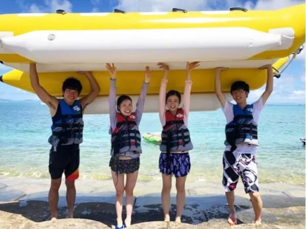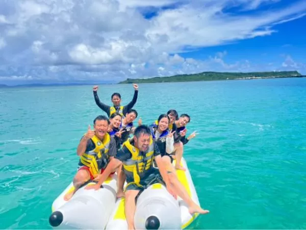 定番のバナナボート最大8名まで乗れてお友達や家族でみんなでワイワイ!