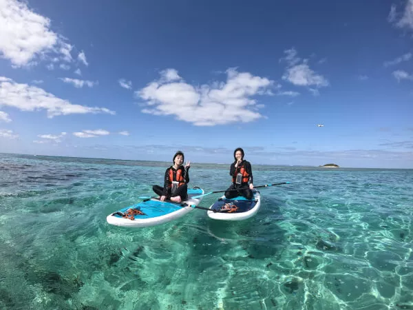 その無人島近海をSUPで周遊しながら、スポットでシュノーケリングを楽しむ特別なプラン。壮大な沖縄の風景を色々な角度から満喫できます。