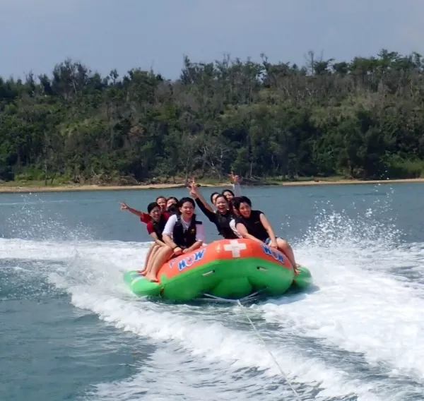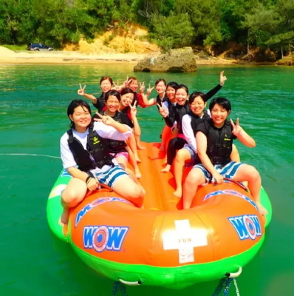 宜野座マリンスポーツ『バナナボート』★海のジェットコースター体験【宜野座村開催・約15分・2歳以上・2名~・写真データ付き・BBQオプション有・当日電話申込可】
