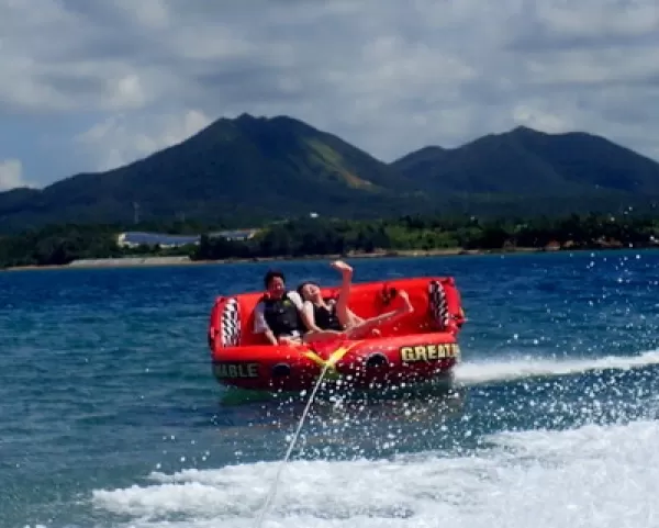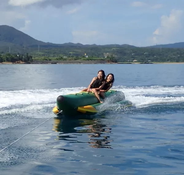 宜野座マリンスポーツ『バナナボート&マーブル』★マリンスポーツ2点セット【宜野座村開催・約30分・2歳以上・2名~・写真データ付き・BBQオプション有・当日電話申込可】